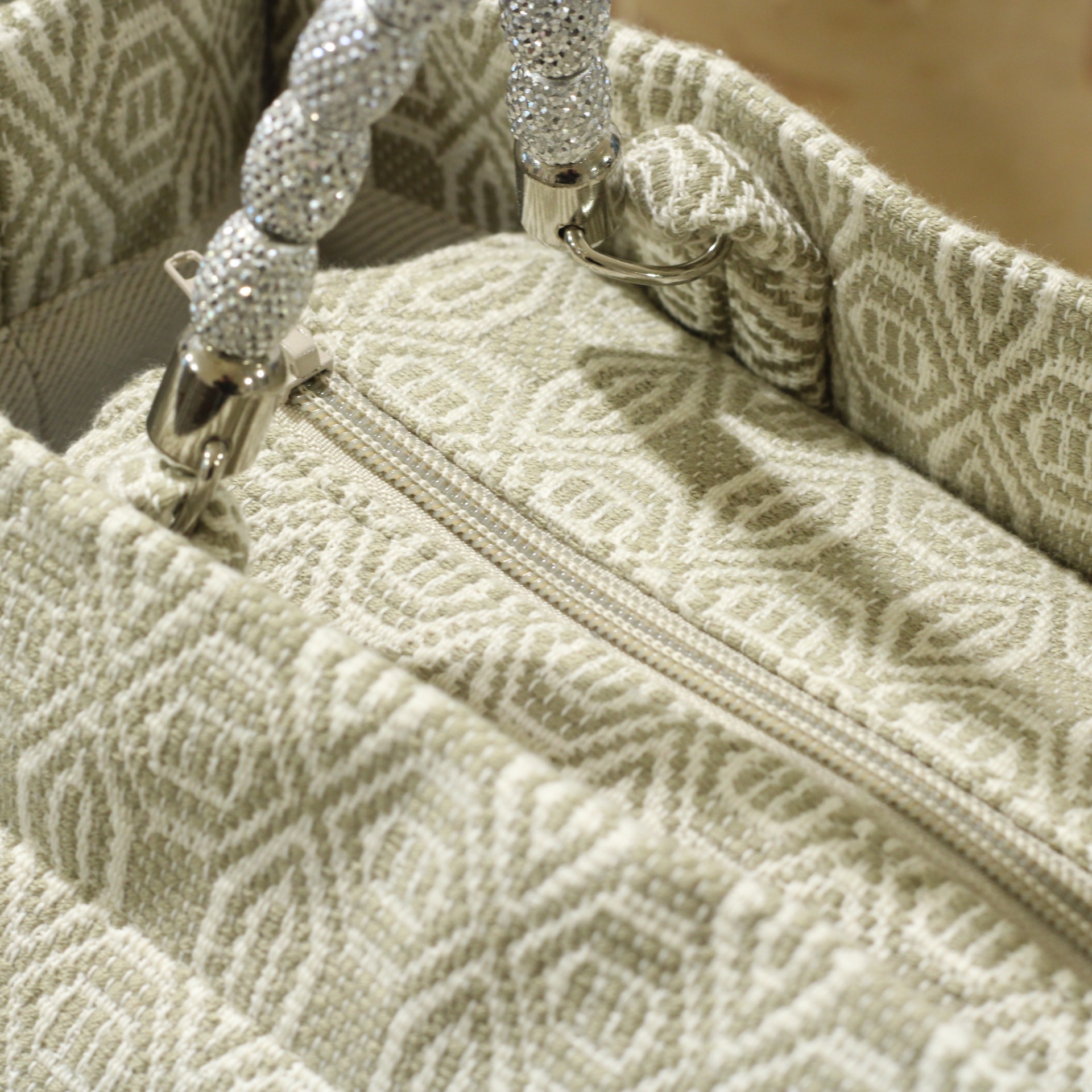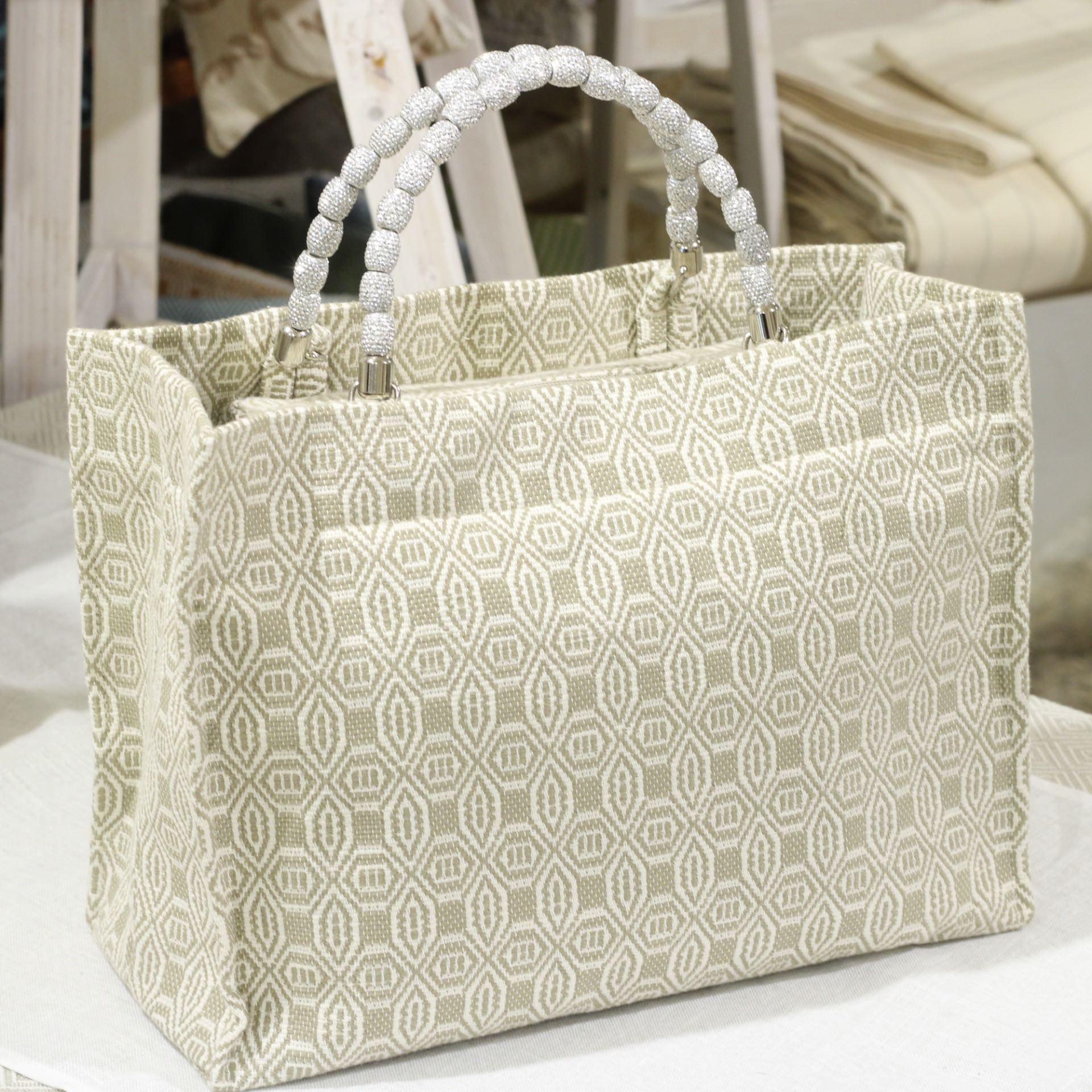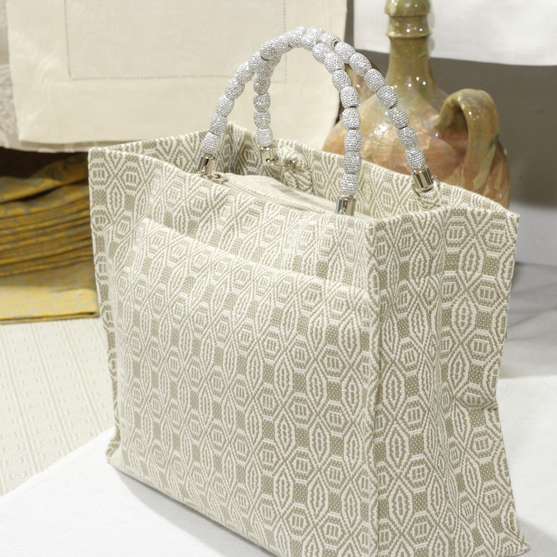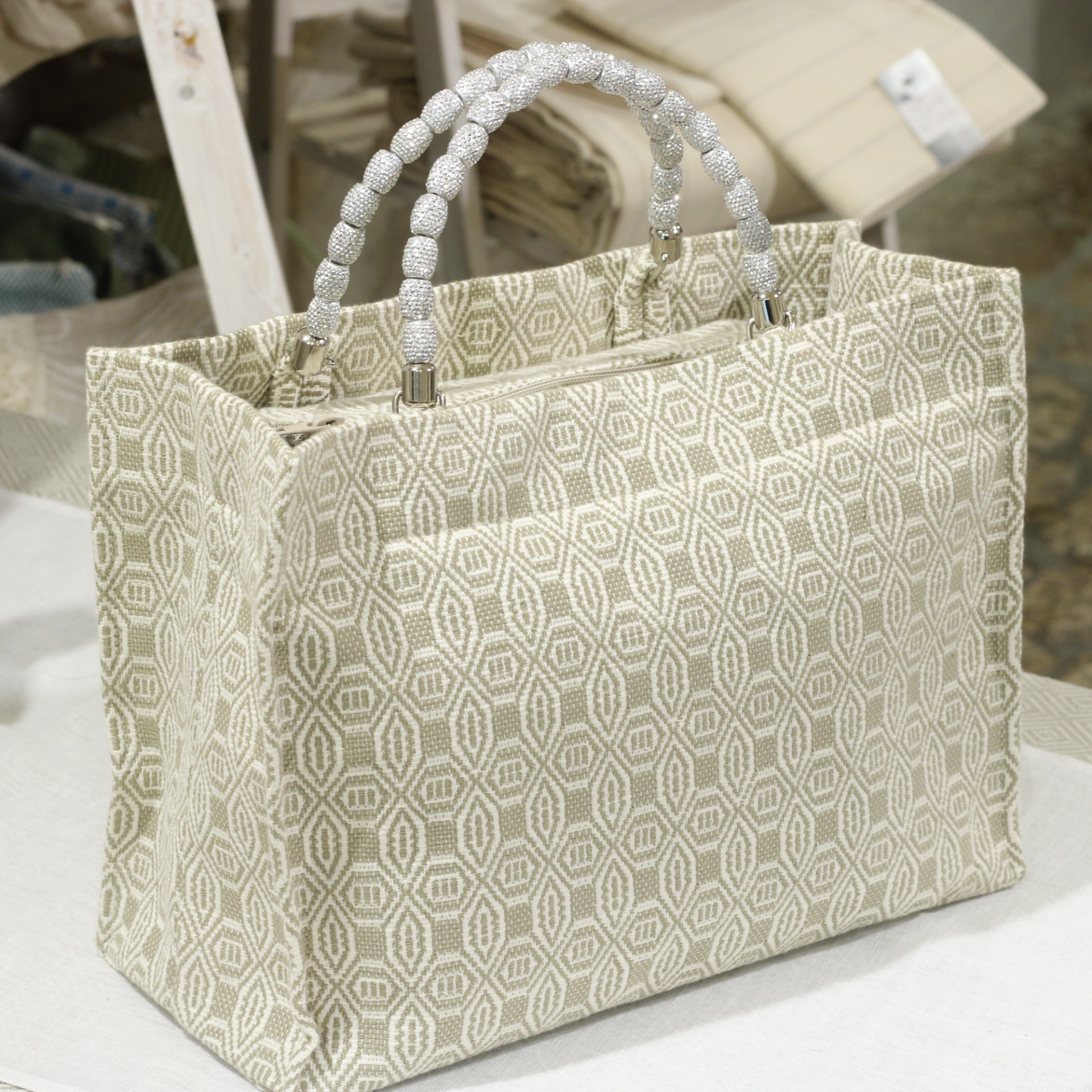 La Borsa Archea è il risultato di una lavorazione lenta e consapevole, fedele alla tradizione della tessitura Jacquard artigianale.