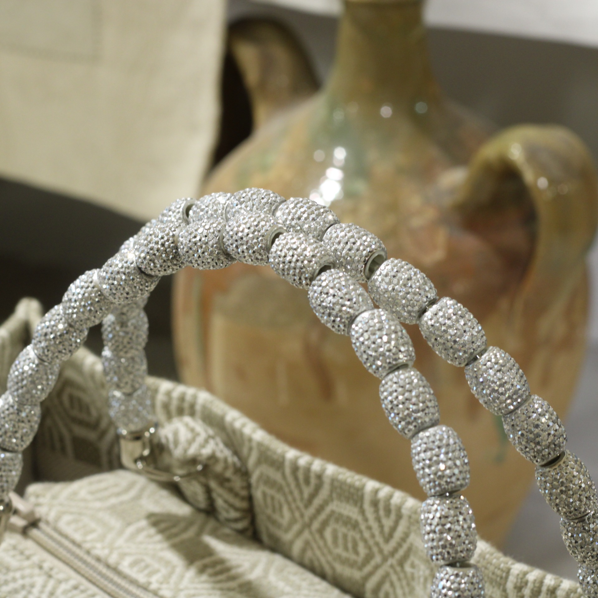 Il colore corda valorizza la matericità naturale del filato e rende la borsa estremamente versatile, adatta sia all'uso quotidiano che a occasioni speciali.