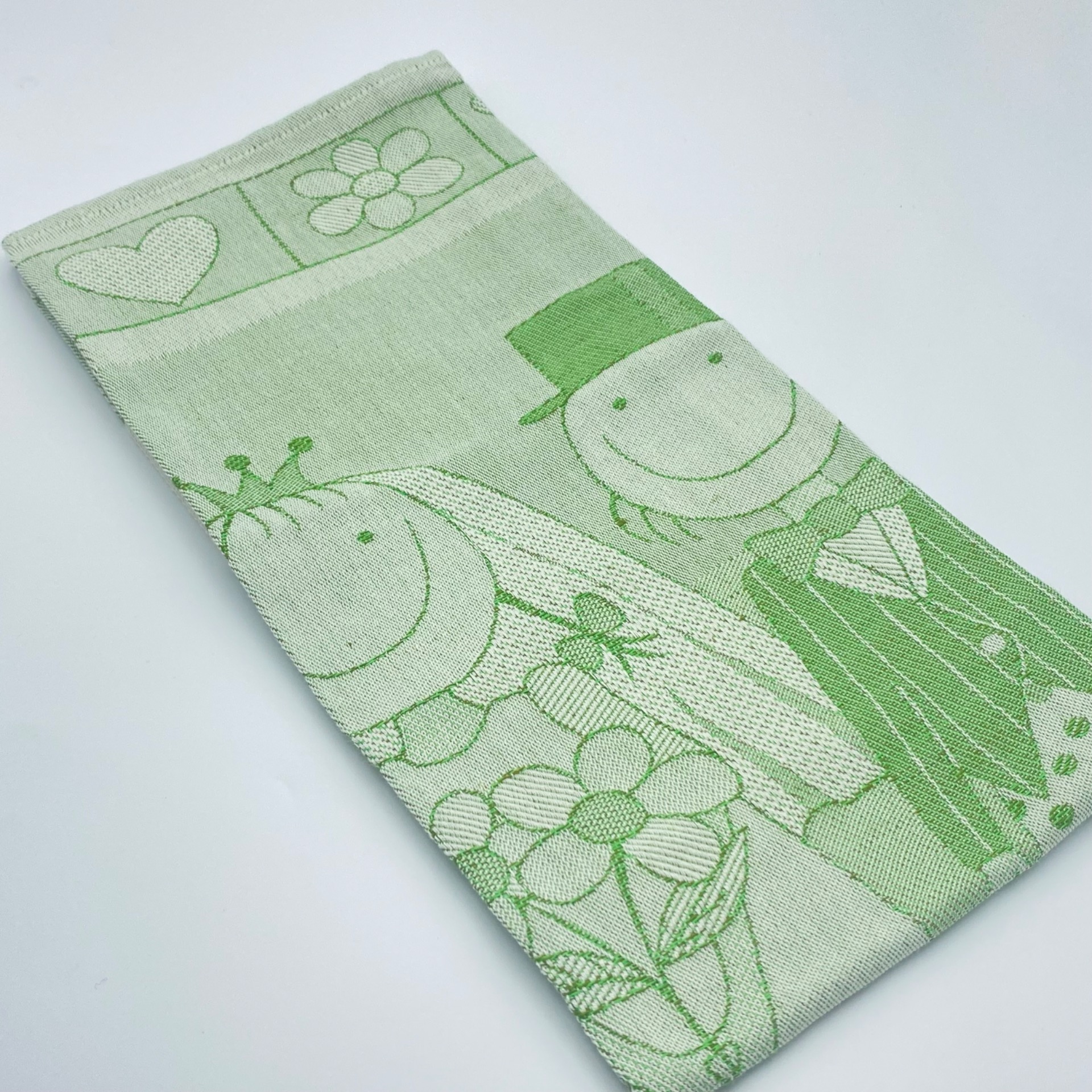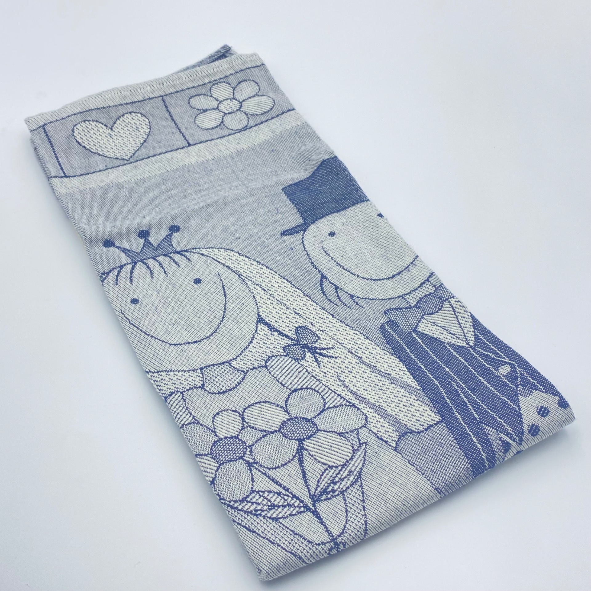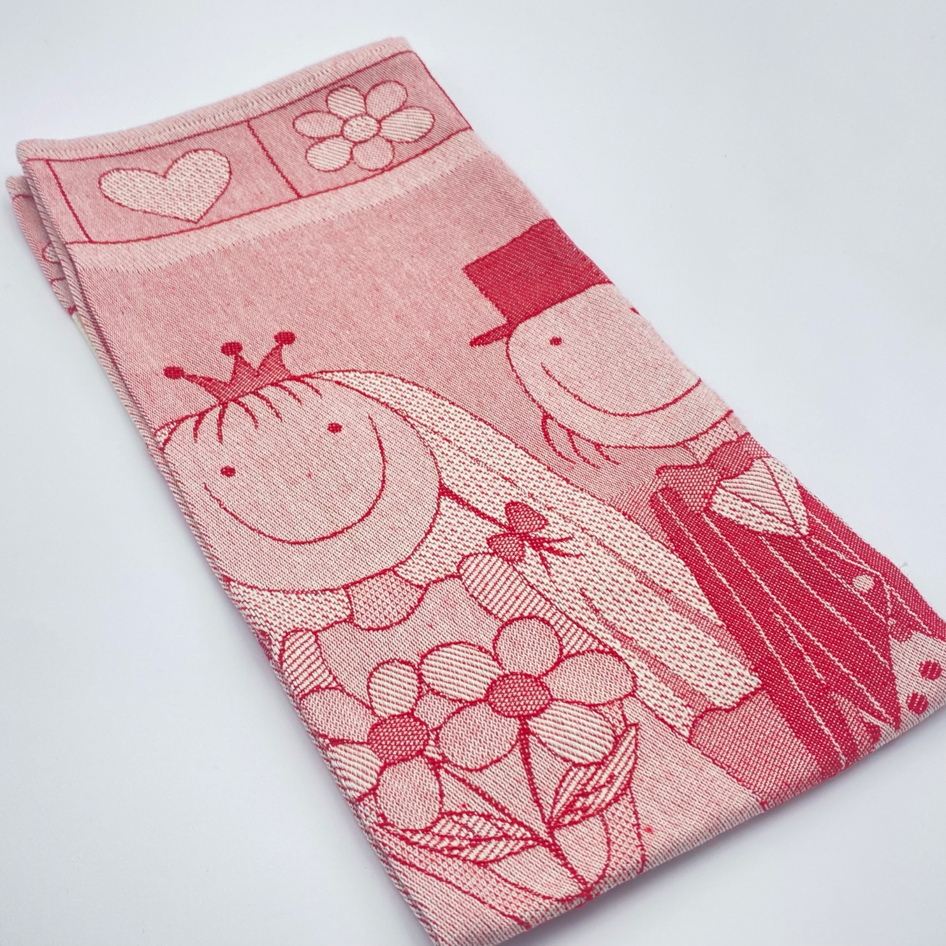 Il motivo jacquard raffigura una coppia di sposini stilizzati, accompagnati da elementi romantici e festosi, perfetto anche come idea regalo per un matrimonio o un anniversario.